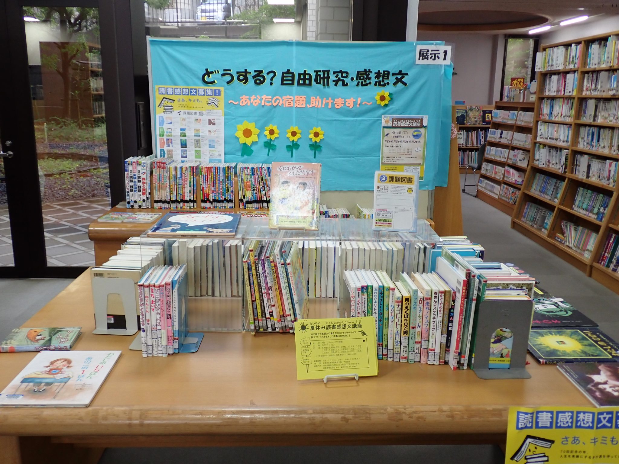 7月の展示は、読書感想文におすすめの図書や自由研究に